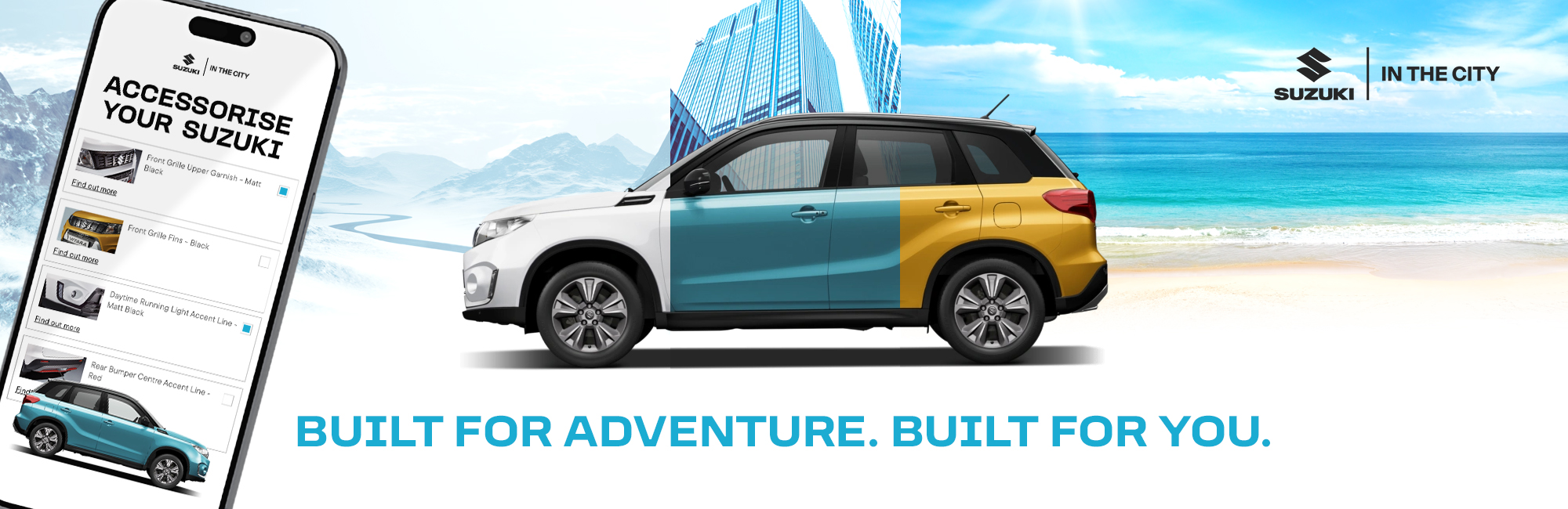 Whether you drive a compact city runaround or an adventure-ready SUV, we’ll help you create a Suzuki that fits your lifestyle perfectly.